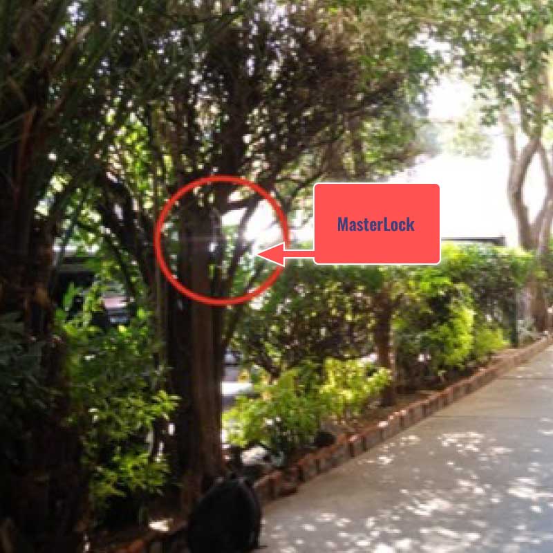 Las llaves están en esta caja. MASTERLOCK En el árbol.