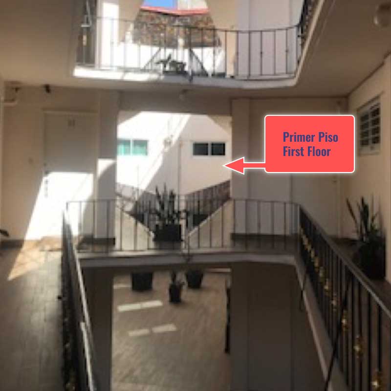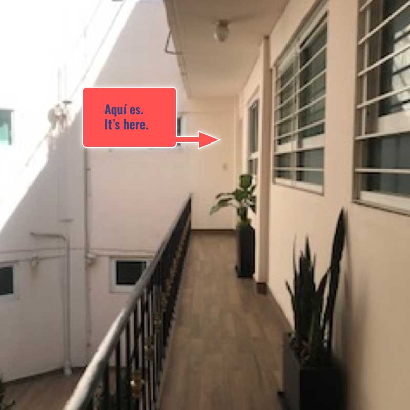 Una vez dentro, subir al 1er piso. Es la puerta de en medio (no tiene número).